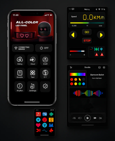 Dostosuj swój wyświetlacz LED w kilka sekund - edytuj tekst, rysuj własne animacje, przełączaj tryby jazdy, zmieniaj jasność albo wybieraj spośród dziesiątek gotowych presetów.