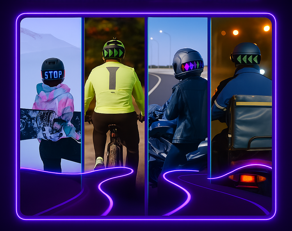 Haloride Pulse to panel LED do kasku, który montujesz z tyłu i sterujesz z telefonu. Wyświetlasz co chcesz: tekst, ikony, emotki, animacje, własne wzory i kolory. Możesz zrobić z tego komunikat na drodze, ale też po prostu stylowy efekt - dokładnie taki, jak lubisz.